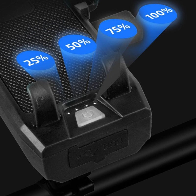 Multifunctionality: Features a tightening mobile phone holder compatible with devices ranging from 68mm to 98mm, making navigation or accessing phones while riding seamless. The in-built USB power bank function provides emergency charging for mobile devices.