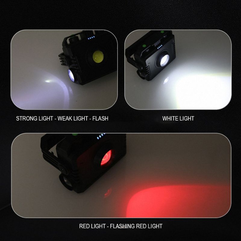Multi‑Mode Operation – White / Red / Red‑Strobe (main) & 100 % / 50 % / Strobe (side) One light covers construction, rescue, inspection, and outdoor events