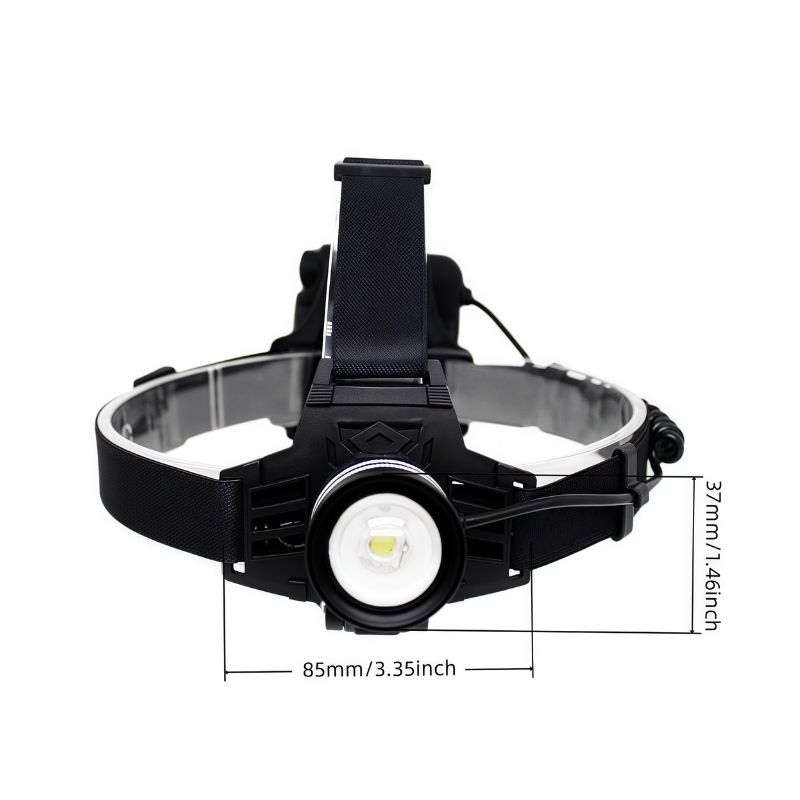 High-performance LED headlamp with adjustable strap for outdoor activities, camping, hiking, and running, featuring bright illumination, durable design, and hands-free lighting.