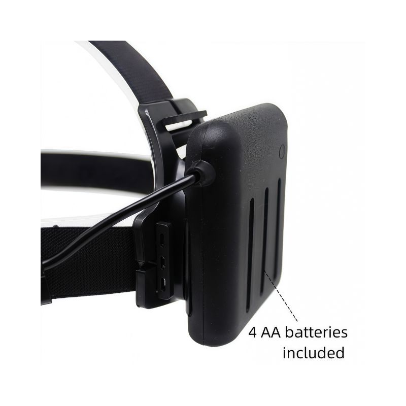 Battery-powered LED headlamp with adjustable straps for outdoor activities, running, camping, and hiking. Durable, lightweight, and energy-efficient headlight for hands-free illumination.